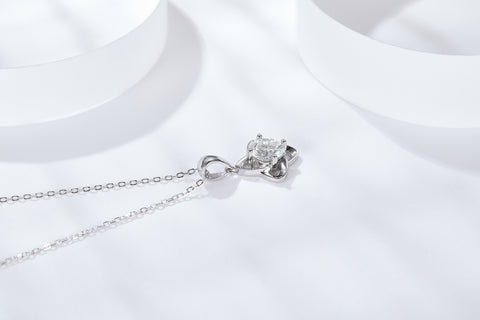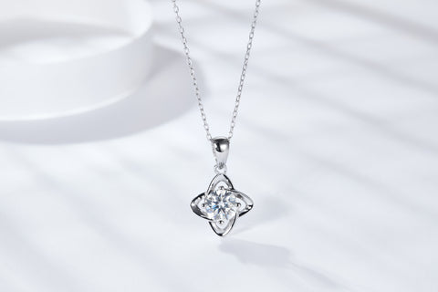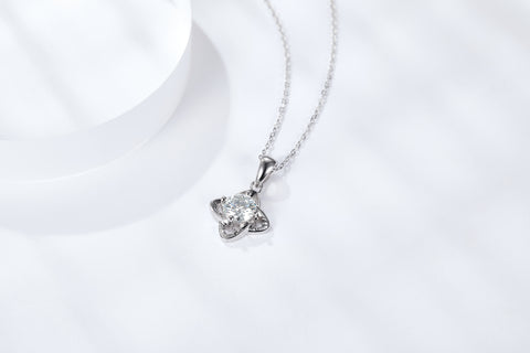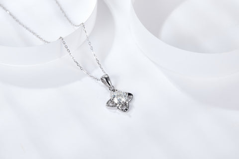 P10471 Silver Moissanite Diamond Lucky Clover Pendant Necklaces